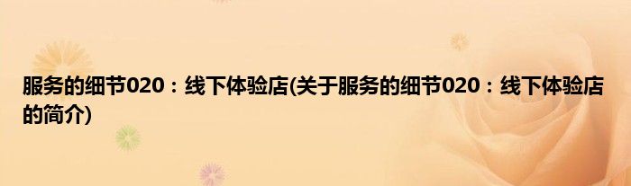 服务的细节020:线下体验店(关于服务的细节020:线下体验店的简介)
