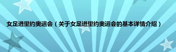 本文关于女足进里约奥运会的基本详情介绍就讲解完毕,希望对大家有所帮助。