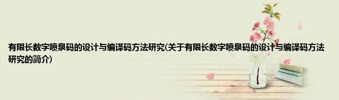 大家好,有限长数字喷泉码的设计与编译码方法研究,关于有限长数字喷泉码的设计与编译码方法研究的简介很多人还不知道,现在让我们一起来看看吧!