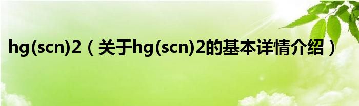 本文关于hg(scn)2的基本详情介绍就讲解完毕,希望对大家有所帮助。