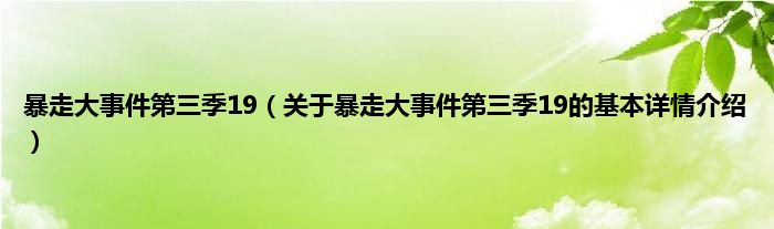 本文关于暴走大事件第三季19的基本详情介绍就讲解完毕,希望对大家有所帮助。