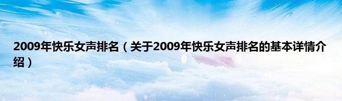 本文关于2009年快乐女声排名的基本详情介绍就讲解完毕,希望对大家有所帮助。