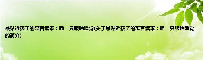 本文关于最贴近孩子的寓言读本:睁一只眼睛睡觉的简介就讲解完毕,希望对大家有所帮助。