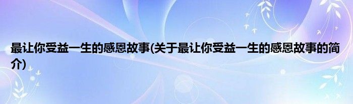 本文关于最让你受益一生的感恩故事的简介就讲解完毕,希望对大家有所帮助。