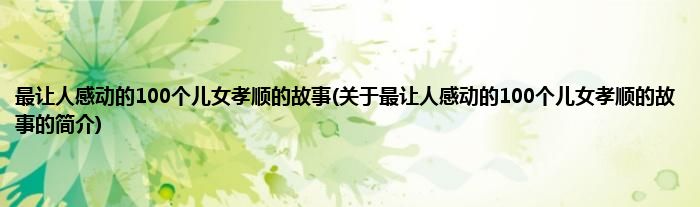 本文关于最让人感动的100个儿女孝顺的故事的简介就讲解完毕,希望对大家有所帮助。