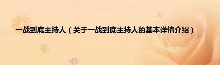 本文关于一战到底主持人的基本详情介绍就讲解完毕,希望对大家有所帮助。