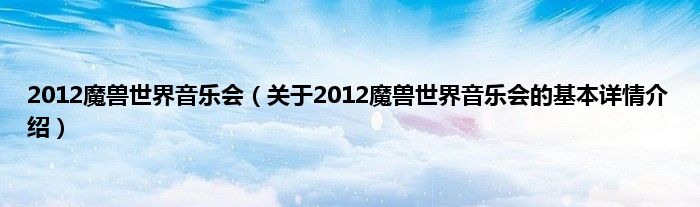 本文关于2012魔兽世界音乐会的基本详情介绍就讲解完毕,希望对大家有所帮助。