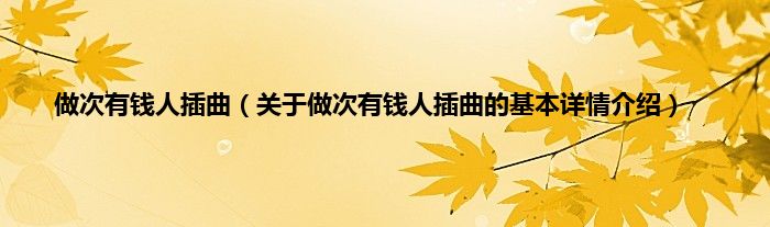 本文关于做次有钱人插曲的基本详情介绍就讲解完毕,希望对大家有所帮助。