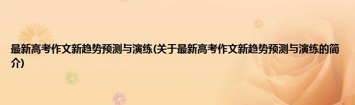 大家好,最新高考作文新趋势预测与演练,关于最新高考作文新趋势预测与演练的简介很多人还不知道,现在让我们一起来看看吧!