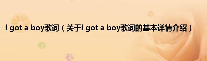本文关于i got a boy歌词的基本详情介绍就讲解完毕,希望对大家有所帮助。