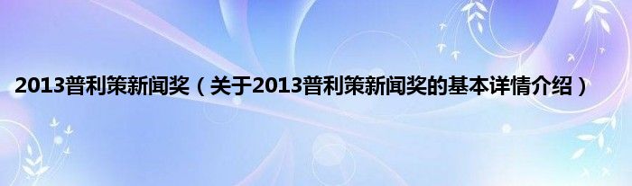 本文关于2013普利策新闻奖的基本详情介绍就讲解完毕,希望对大家有所帮助。