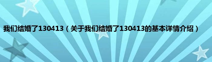我们结婚了130413(关于我们结婚了130413的基本详情介绍)