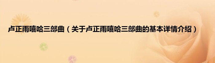 本文关于卢正雨嘻哈三部曲的基本详情介绍就讲解完毕,希望对大家有所帮助。
