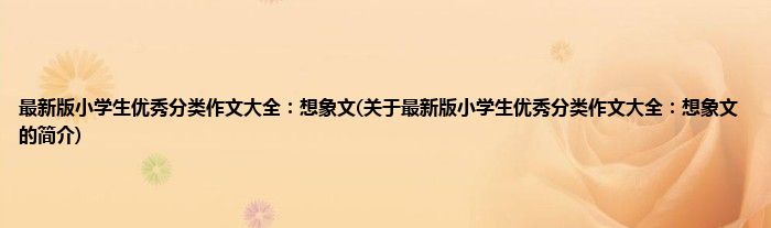 最新版小学生优秀分类作文大全:想象文(关于最新版小学生优秀分类作文大全:想象文的简介)