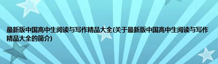 本文关于最新版中国高中生阅读与写作精品大全的简介就讲解完毕,希望对大家有所帮助。