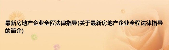 本文关于最新房地产企业全程法律指导的简介就讲解完毕,希望对大家有所帮助。