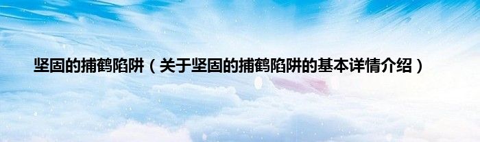 本文关于坚固的捕鹤陷阱的基本详情介绍就讲解完毕,希望对大家有所帮助。