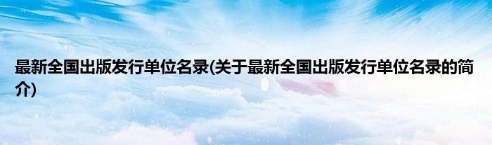 本文关于最新全国出版发行单位名录的简介就讲解完毕,希望对大家有所帮助。