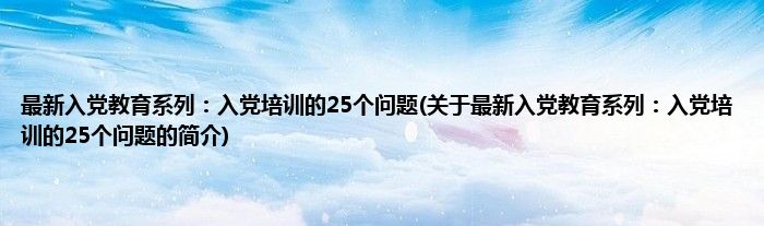 最新入党教育系列:入党培训的25个问题(关于最新入党教育系列:入党培训的25个问题的简介)