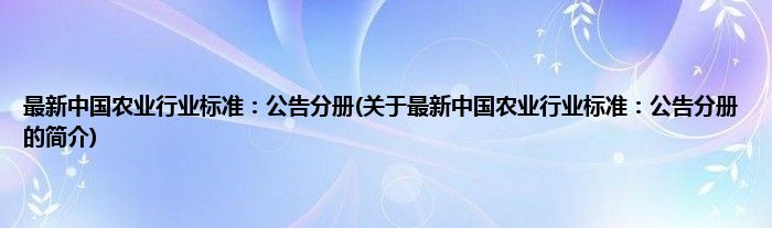 本文关于最新中国农业行业标准:公告分册的简介就讲解完毕,希望对大家有所帮助。