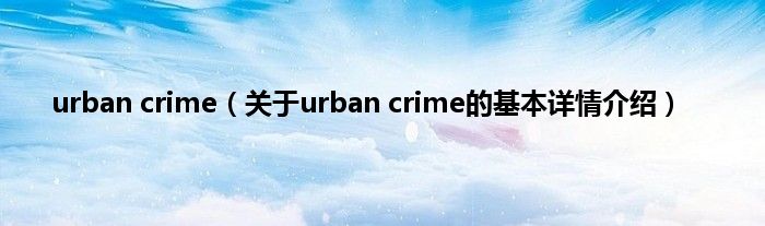 本文关于urban crime的基本详情介绍就讲解完毕,希望对大家有所帮助。