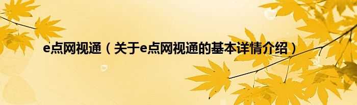 本文关于e点网视通的基本详情介绍就讲解完毕,希望对大家有所帮助。