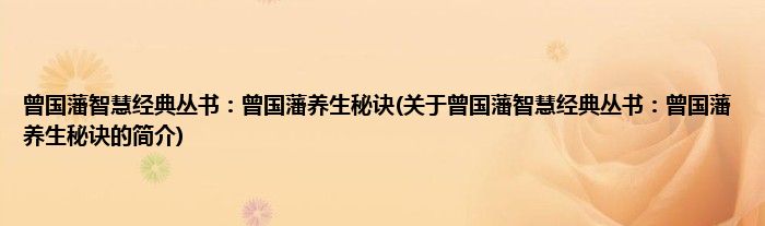 大家好,曾国藩智慧经典丛书:曾国藩养生秘诀,关于曾国藩智慧经典丛书:曾国藩养生秘诀的简介很多人还不知道,现在让我们一起来看看吧!