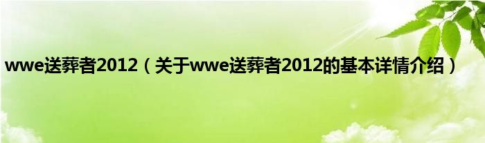 本文关于wwe送葬者2012的基本详情介绍就讲解完毕,希望对大家有所帮助。