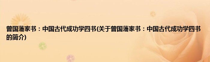 本文关于曾国藩家书:中国古代成功学四书的简介就讲解完毕,希望对大家有所帮助。