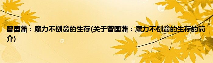 本文关于曾国藩:魔力不倒翁的生存的简介就讲解完毕,希望对大家有所帮助。