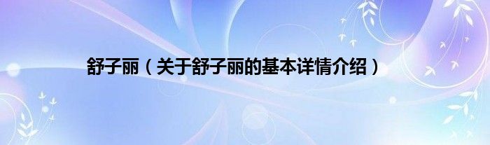 本文关于舒子丽的基本详情介绍就讲解完毕,希望对大家有所帮助。