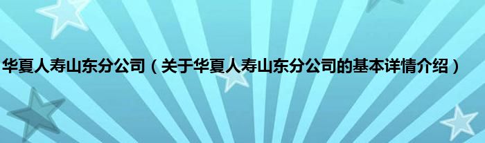 本文关于华夏人寿山东分公司的基本详情介绍就讲解完毕,希望对大家有所帮助。