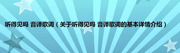 本文关于听得见吗 音译歌词的基本详情介绍就讲解完毕,希望对大家有所帮助。