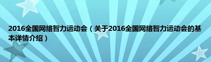 本文关于2016全国网络智力运动会的基本详情介绍就讲解完毕,希望对大家有所帮助。