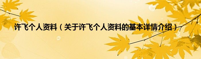 本文关于许飞个人资料的基本详情介绍就讲解完毕,希望对大家有所帮助。