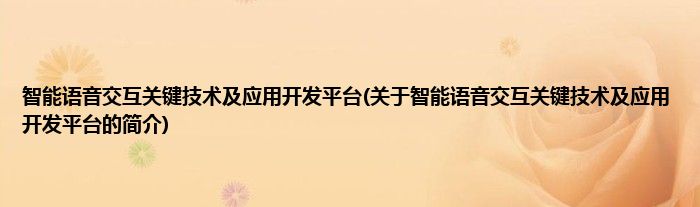 大家好,智能语音交互关键技术及应用开发平台,关于智能语音交互关键技术及应用开发平台的简介很多人还不知道,现在让我们一起来看看吧!