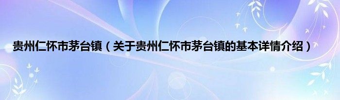 本文关于贵州仁怀市茅台镇的基本详情介绍就讲解完毕,希望对大家有所帮助。