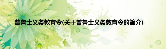本文关于普鲁士义务教育令的简介就讲解完毕,希望对大家有所帮助。