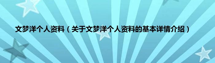 本文关于文梦洋个人资料的基本详情介绍就讲解完毕,希望对大家有所帮助。
