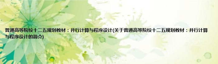 大家好,普通高等院校十二五规划教材:并行计算与程序设计,关于普通高等院校十二五规划教材:并行计算与程序设计的简介很多人还不知道,现在让我们一起来看看吧!