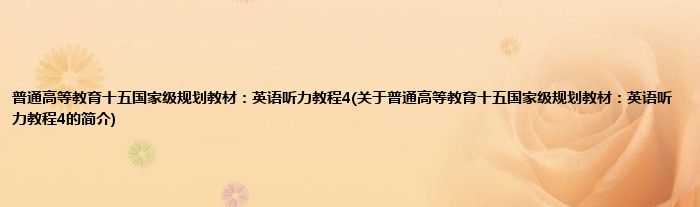 1、 《普通高等教育十五国家级规划教材:英语听力教程4》。
