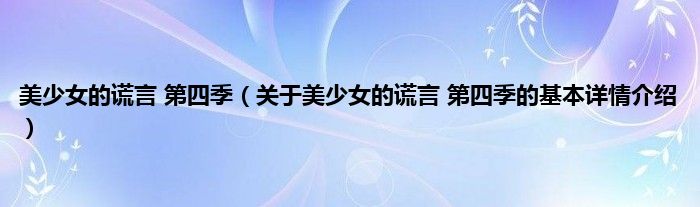 美少女的谎言第四季(关于美少女的谎言第四季的基本详情介绍)