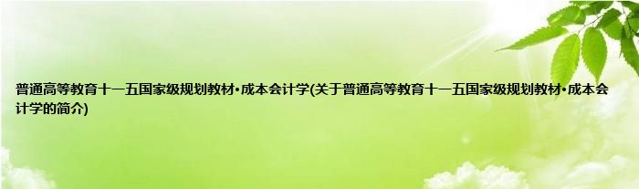 1、 《普通高等教育十一五国家级规划教材·成本会计学》是机械工业出版社出版的一本图书。