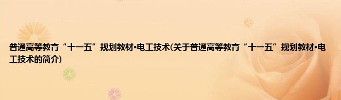 大家好,普通高等教育“十一五”规划教材·电工技术,关于普通高等教育“十一五”规划教材·电工技术的简介很多人还不知道,现在让我们一起来看看吧!