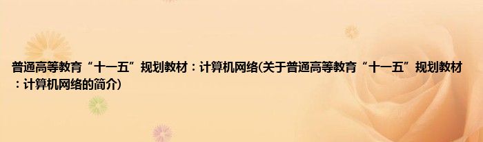 本文关于普通高等教育“十一五”规划教材:计算机网络的简介就讲解完毕,希望对大家有所帮助。