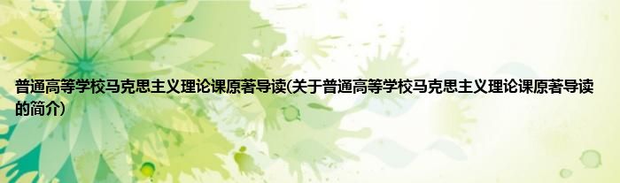 本文关于普通高等学校马克思主义理论课原著导读的简介就讲解完毕,希望对大家有所帮助。