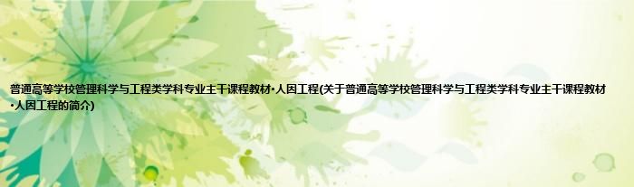 本文关于普通高等学校管理科学与工程类学科专业主干课程教材·人因工程的简介就讲解完毕,希望对大家有所帮助。