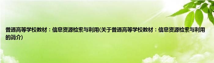 本文关于普通高等学校教材:信息资源检索与利用的简介就讲解完毕,希望对大家有所帮助。