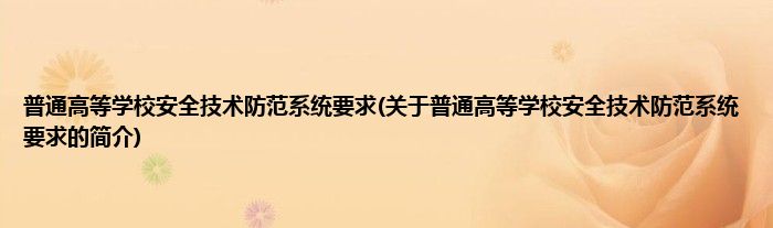 本文关于普通高等学校安全技术防范系统要求的简介就讲解完毕,希望对大家有所帮助。