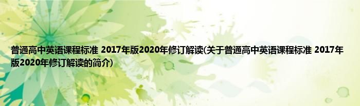 普通高中英语课程标准 2017年版2020年修订解读(关于普通高中英语课程标准 2017年版2020年修订解读的简介)